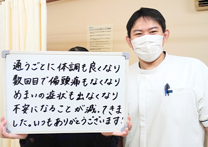 通うごとに毎月崩していた体調も良くなり頭痛やめまいも少しずつかいぜんされてきました。